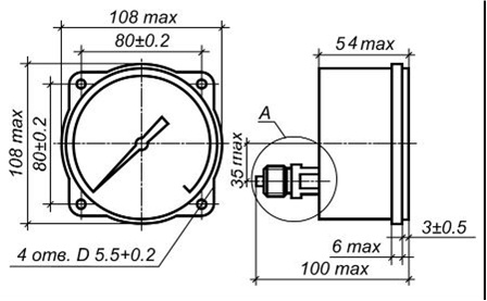 Стандартным исполнением показывающего технического манометра, принято считать радиальный штуцер без фланца (есть и задним фланцем). Доступными являются также манометры с осевым штуцером без фланца и с передним фланцем.