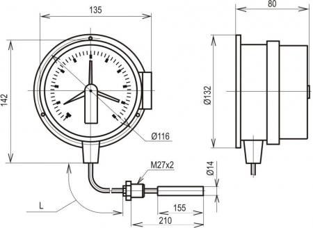 Що стосується конструктивних особливостей. Довжина термобаллона у даного термометра становить 160 мм. При цьому, діаметр термобаллона - 14 мм. Поєднання виробляється за допомогою різьблення М27х2. Довжина з'єднувального капіляра може варіюватися. Стандартними довжинами є наступні: 2,5 м; 4м; 6м; 10м; 16м. Діапазони вимірювання температур наступні: від 0 до 120 градусів, від 0 до 150 градусів, від 0 до 200 градусів, від 0 до 300 градусів і від 0 до 400 градусів.